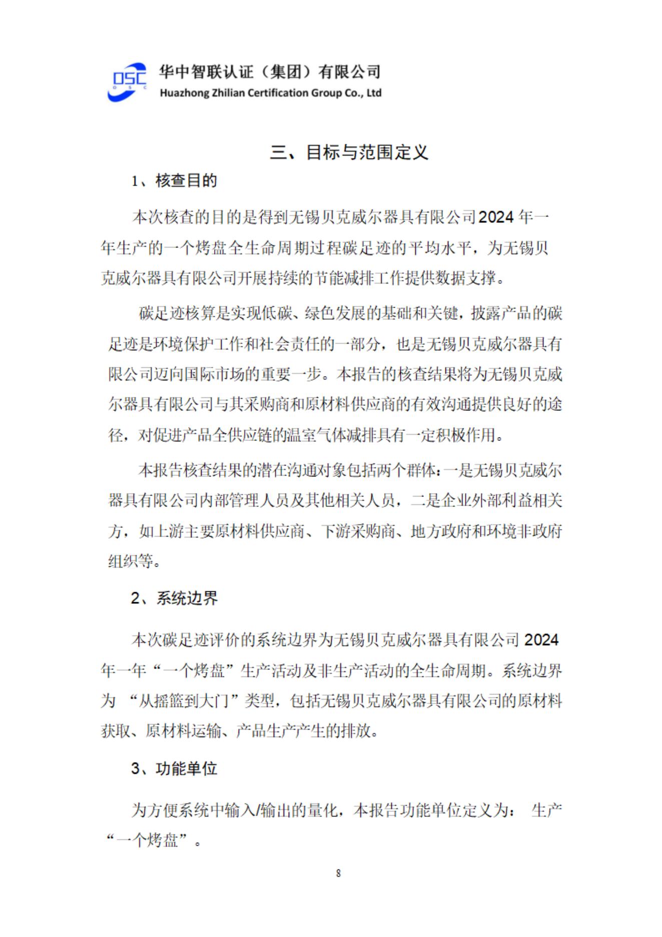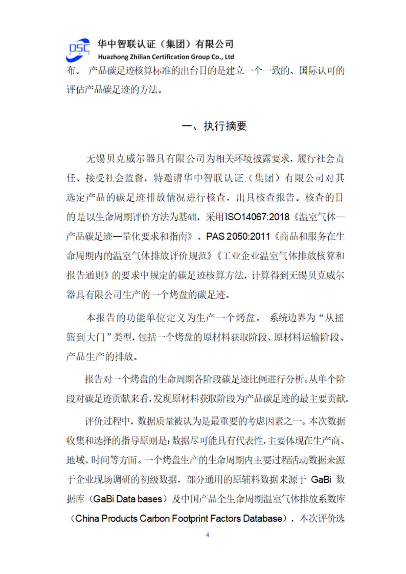 首页 » 资讯中心 » 公司动态 » 无锡贝克威尔器具有限公司产品碳足迹报告